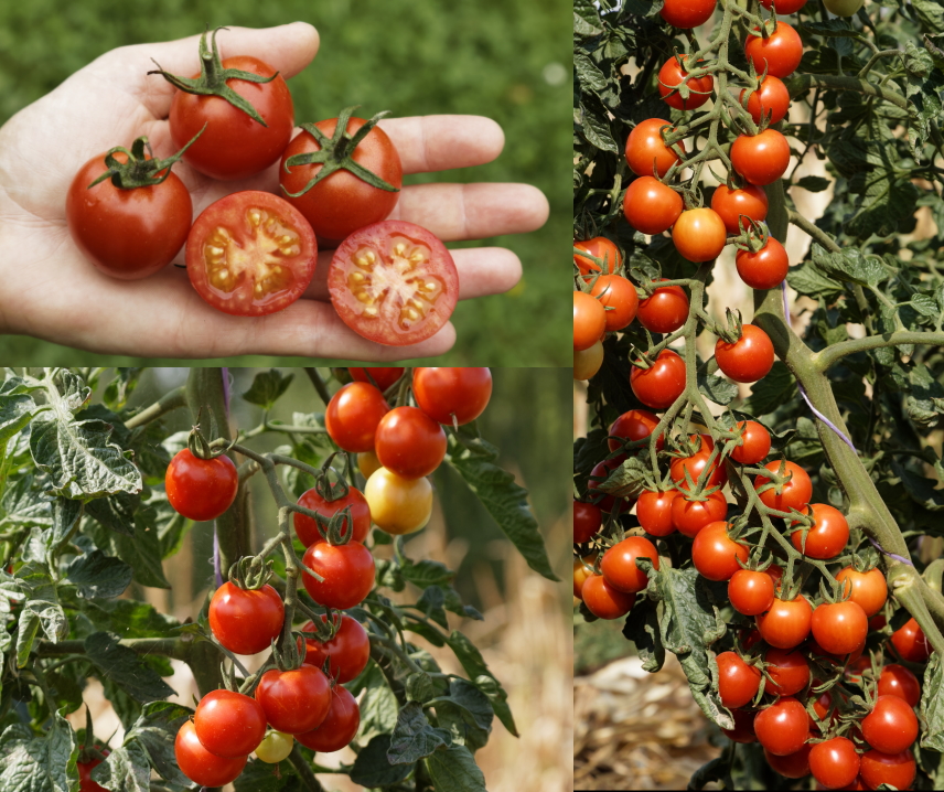 rote Cocktailtomate, Früchte mit ca. 30 g in Trauben, sehr hohe Resistenz gegen die Kraut- und Braunfäule, sehr ausgewogener Tomatengeschmack, sehr wüchsig und ausgezeichnet freilandtauglich.