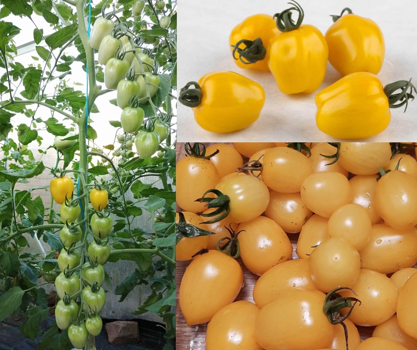 gelbe, ertragreiche Cocktailtomate mit außergewöhnlicher Apfel- bzw. Erdbeerform. Hervorragender Geschmack mit hohem Zuckergehalt und relativ fester Biss. Vielfach resistent, nach 2 überzeugenden Testjahren 2023 neu im Angebot!